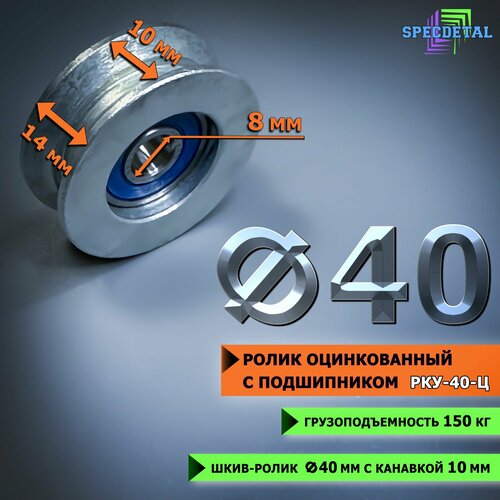 Шкив-ролик для уголка/струны спецдеталь оцинкованный Ф40 мм до 10 мм