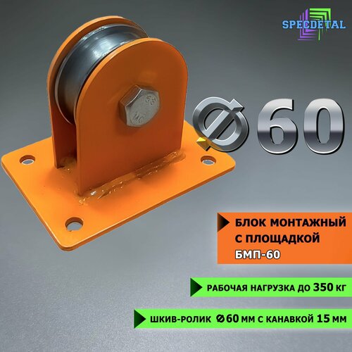Блок монтажный ф60 окрашенный с площадкой спецдеталь шкив-ролик с подшипником и канавкой для троса