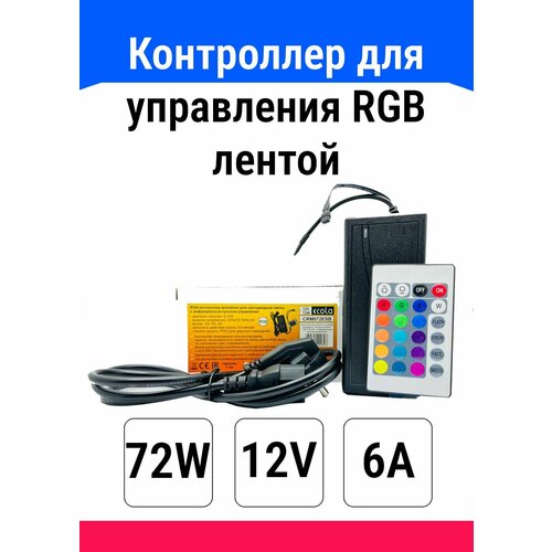 Контроллер для управления RGB лентой моноблок с блоком питания 72W 12V 6A с инфракрасным пультом управления