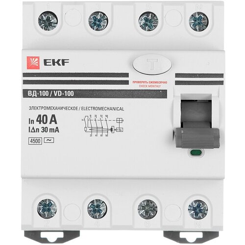 УЗО EKF (elcb-4-40-30-em-pro) 40А 30 мА 4P тип АС 4,5 кА