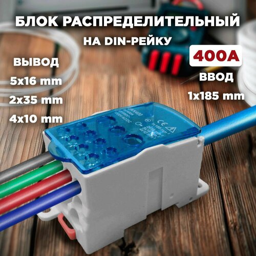 Шина РБД 400А нулевая фазная в корпусе на дин рейку 1х185 мм кросмодуль синяя