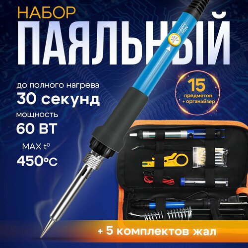 Набор паяльный Conflate, паяльник электрический в комплекте 15 шт, плавная регулировка мощности