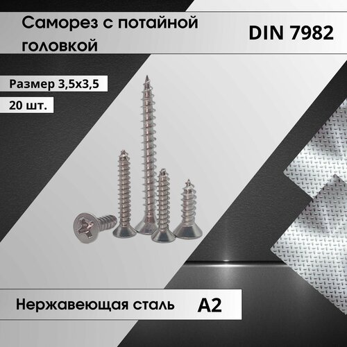 Саморез нержавеющий (3,5х35) с потайной головкой DIN 7982 шлиц крест (20шт.)