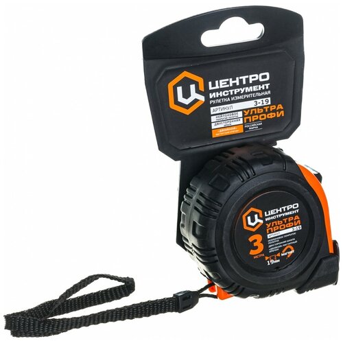 Рулетка центроинструмент "ультра-профи", с двусторонним полотном, 3мх19мм, магнитная
