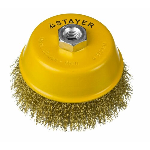 STAYER "PROFESSIONAL" щетка чашечная для УШМ, витая стальная латунь проволока 0,3 мм 125 мм.*М14