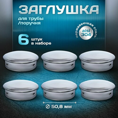 Заглушка для трубы, поручня диаметром 50,8 мм и толщиной стенки 1,5 мм, нержавеющая сталь aisi 304 6 шт.