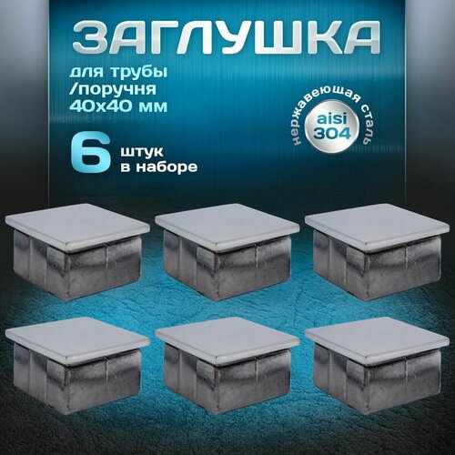 Заглушка квадратная для трубы 40х40 мм и толщиной стенки 1,5мм, нержавеющая сталь aisi 304, литая, 6 шт.
