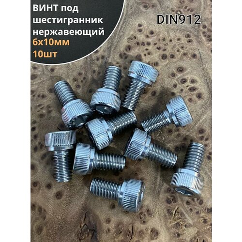 Винт нержавеющий шестигранник М6х10, DIN 912, 10 шт