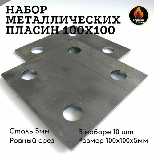 Пластина металлическая 100*100*5 мм / для обвязки свай / Набор из 10 шт. Горячая Сталь