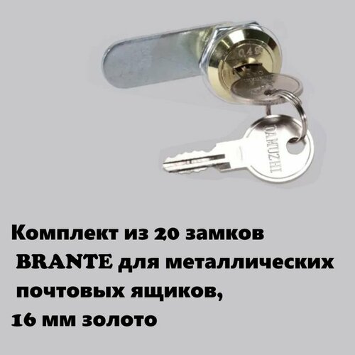 Комплект 20 замков BRANTE для металлических почтовых ящиков, 16 мм золото