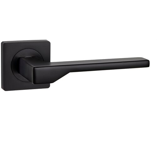 Готовый комплект 4в1 ручка дверная межкомнатная CODE DECO РР Slim H-30133-A-BLM на тонком основании / цвет Черный + защелка без фиксации + петли накладные (2 шт)