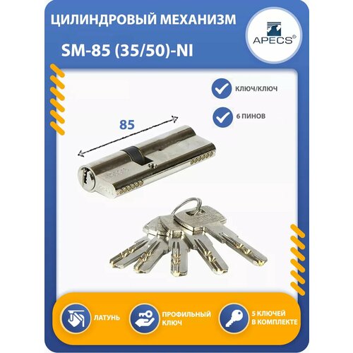 Цилиндровый механизм Apecs SM-120(55C/65)-C-NI, вертушка/ключ, никель