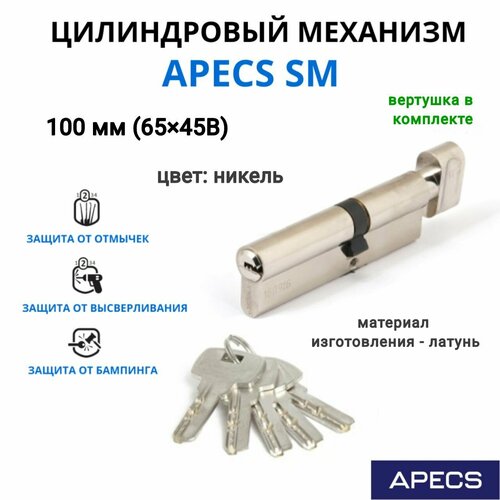 Цилиндровый механизм с вертушкой Apecs SM 110 (45C/65)-C-NI, личинка для замка