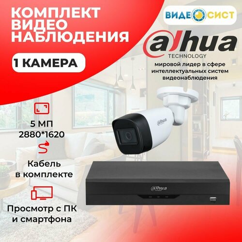 Готовый комплект видеонаблюдения уличный 5Мп Dahua 1 камера