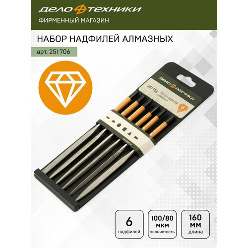 Набор надфилей алмазных 6 шт, длина 160 мм, Дело Техники, 251706
