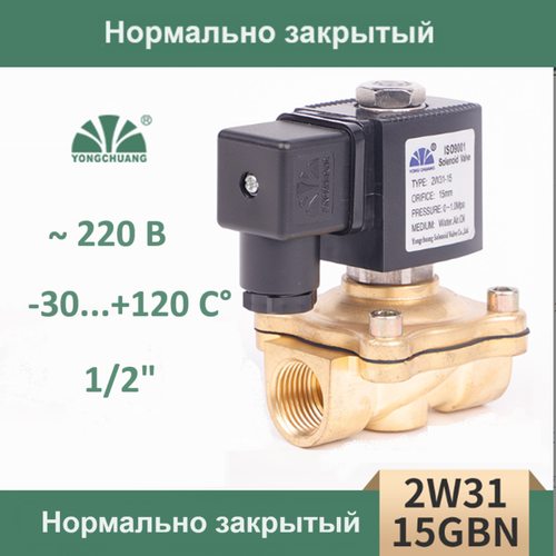 Электромагнитный клапан соленоидный 1/2" 220В, нормально закрытый