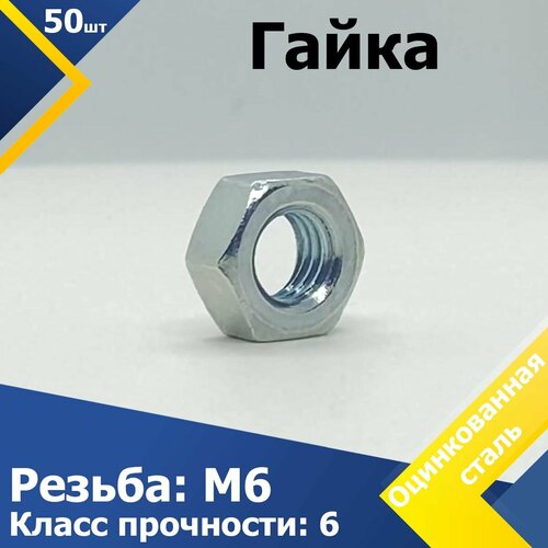 Гайка оцинкованная М6 (50 шт.) DIN 934