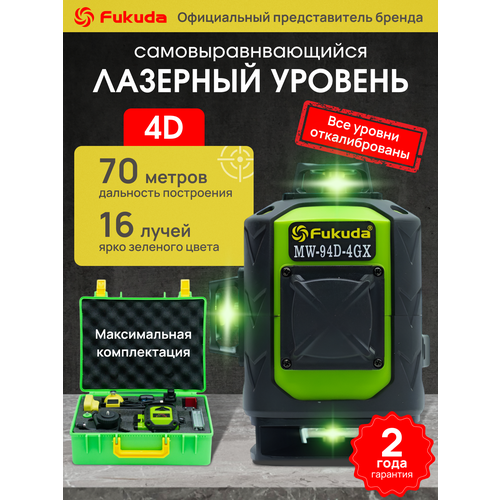 Лазерный уровень 4D MW-94D-4GX 16 линий FUKUDA в пластиковом кейсе.