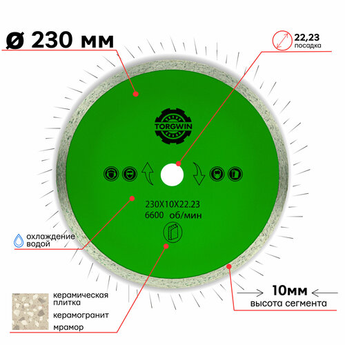 Диск алмазный сплошной 230 х 2,5 х 10 х 22,23 мм для гранита TORGWIN 106AG-TG23022KL