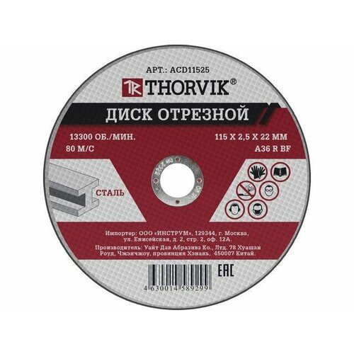 THORVIK ACD11512 Диск отрезной абразивный по металлу, 115х1.2х22.2 мм 52366
