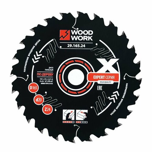 Диск пильный Эксперт 165x2,2/1,6x20 Z24 A18 Woodwork 29.165.24