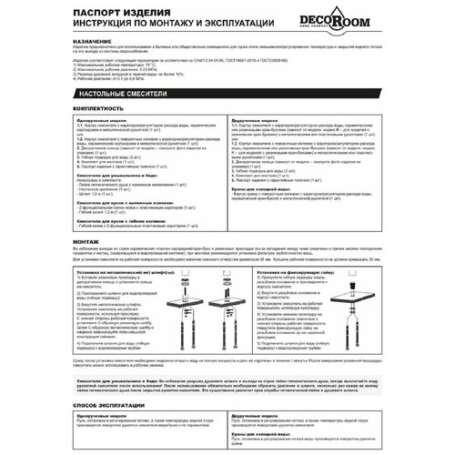 Смеситель DecoRoom DR22018 для кухонной мойки