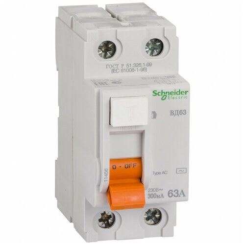 УЗО Schneider Electric 300мА тип AC ВД63 2 полюса 63А Домовой, арт. 11456