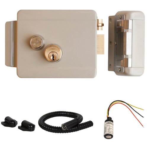 Falcon FE-2369i уличный электромеханический замок накладной для калитки. Корпус крашенная сталь. Гибкий переход. БУЗ блок управления замком