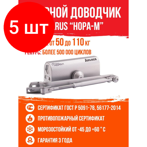 Комплект 5 штук, Доводчик на дверь Isparus ISP 430, 50-110кг, морозостойкий