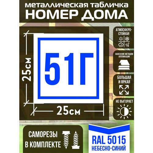 Адресная табличка на дом с номером 51г RAL 5015 синяя