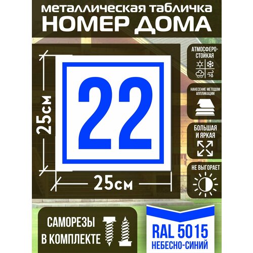 Адресная табличка на дом с номером 22 RAL 5015 синяя