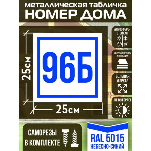 Адресная табличка на дом с номером 96б RAL 5015 синяя