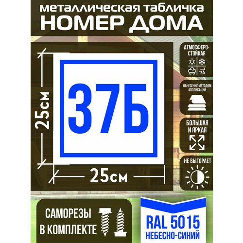 Адресная табличка на дом с номером 37б RAL 5015 синяя