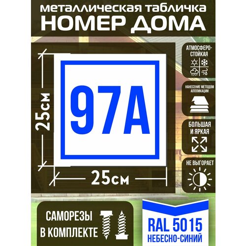 Адресная табличка на дом с номером 97а RAL 5015 синяя