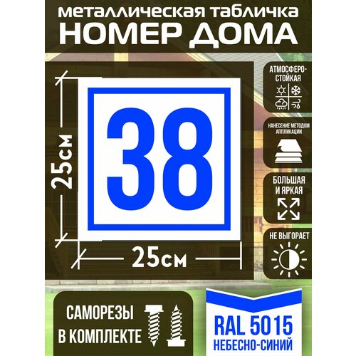 Адресная табличка на дом с номером 38 RAL 5015 синяя