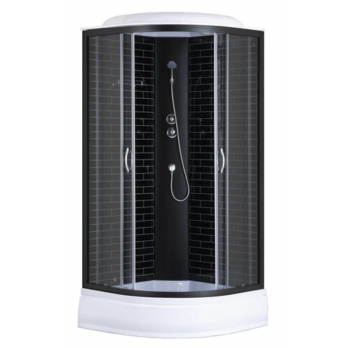 Душевая кабина Loranto 90х90х215 поддон 25 см черный кирпичный узор, серое стекло 4мм профиль черный (CS-6690-25GB 90)