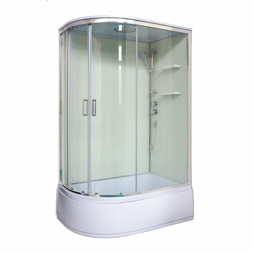 Душевая кабина Loranto NEO 120x80x(170+38) правая, с высоким поддоном 38см, прозрачное закаленное стекло 4 мм, задние стеклянные стенки белые, с двумя полками, цвет профиля серебро (CS-22012R)