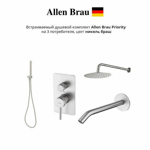 Душевой комплект Allen Brau Priority 423 на 3 потребителя, цвет никель брашированный