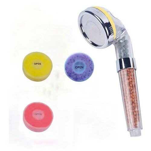 Лейка для душа с турмалином, ароматическим фильтром (лимон) (диаметр головки 8 см) и 3 сменными фильтрами (лимон, роза, лаванда)