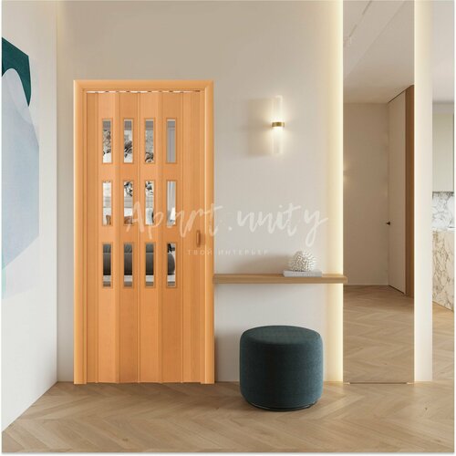 Дверь складная межкомнатная гармошка со стеклом, цвет Бук темный