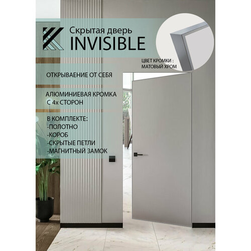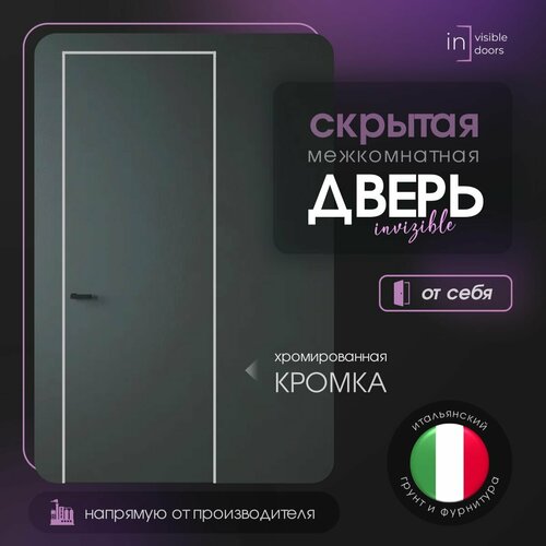 Дверь межкомнатная скрытого монтажа Invisible Revers, Скрытая дверь под покраску с хромированной кромкой, Левая