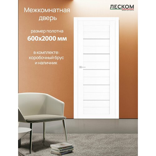 Дверь межкомнатная Леском Т1, 600х2000 глухая, МДФ, эмалит, комплект с коробкой и наличником
