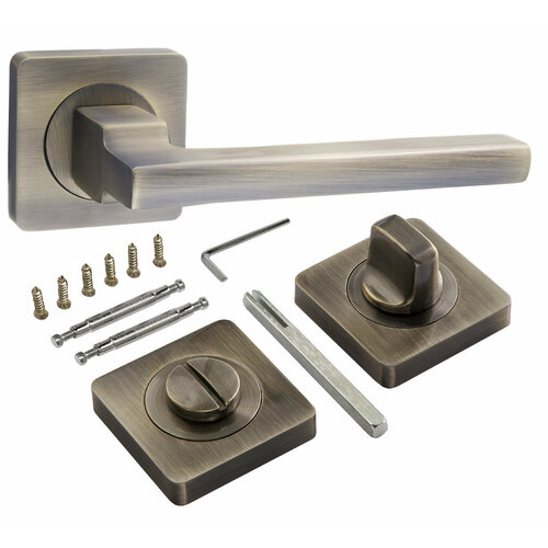 Ручка дверная и ручка поворотная RENZ (ренц) комплект "Каролина", бронза античная