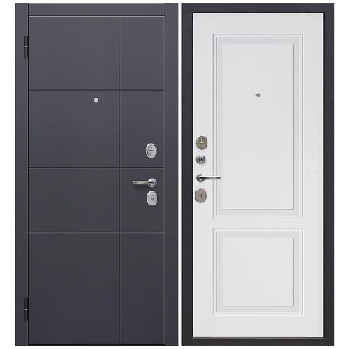 Входная дверь Толстяк Букле Антрацит Эмалит белый Зеркало 960*2050 Правая