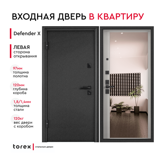 Дверь входная металлическая Torex для квартиры Defender X 950х2100 левая усиленная шумоизоляция и герметичность, антикоррозия, зеркало