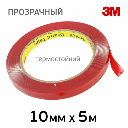 Двухсторонняя лента 3M (10мм; 5м) прозрачная акриловая, скотч для приклеивания шильдиков