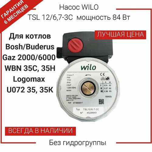 Насос WILO TSL 12/6,7-3С мощность 84 Вт для котлов Bosch Gaz6000, Buderus U072