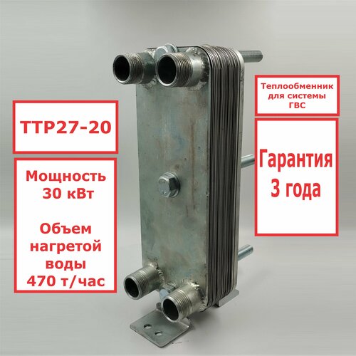 Микро разборный пластинчатый теплообменник ТТР27-20 для ГВС (30 кВт), 3 точки водоразбора