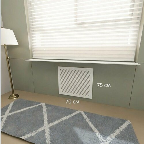 Экран для радиатора отопления из МДФ. Решетка для батарей. Модель Бета. ширина 70 см высота 70 см. Белый