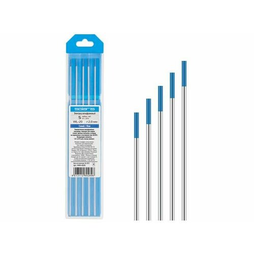 Электрод вольфрамовый синий WL-20, Ф 2,0 мм (набор 5 шт) SOLARIS (WM-4529)